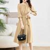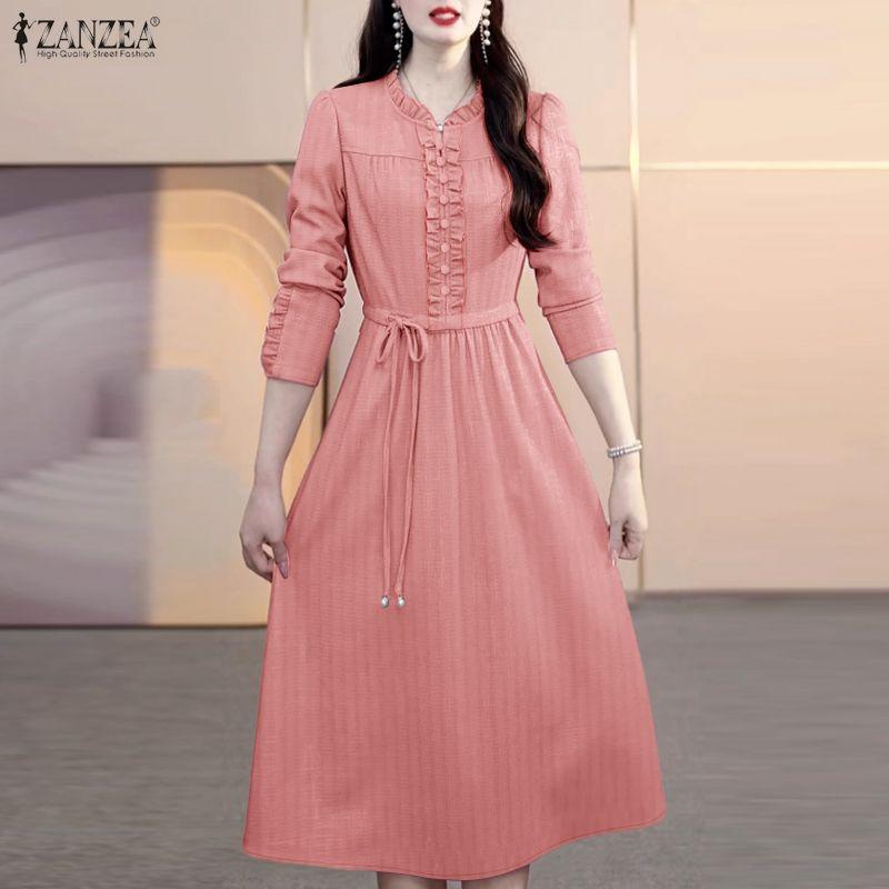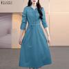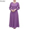 ZANZEA Lässiges, einfarbiges, langärmeliges Kleid mit Rundhalsausschnitt für Damen