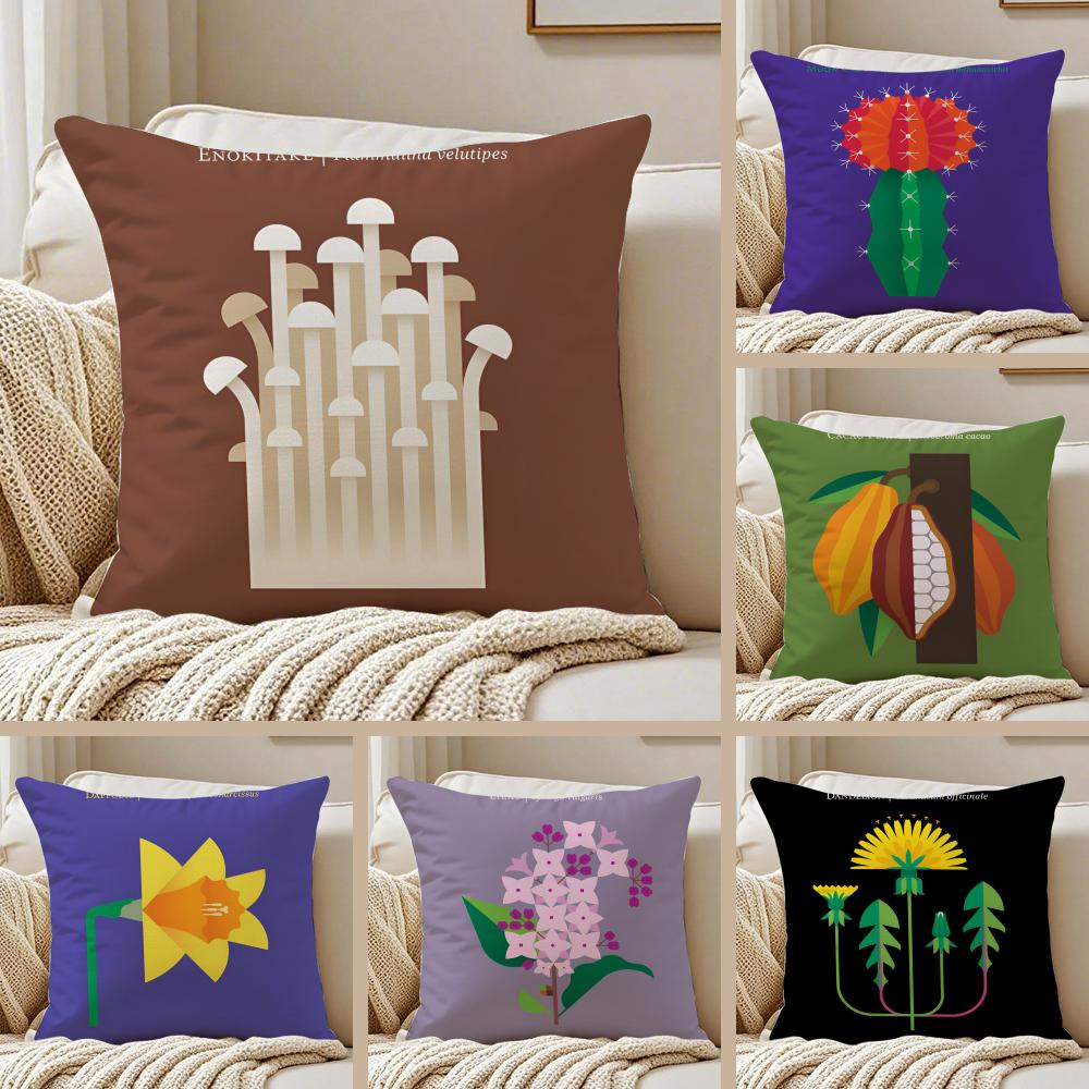 Simple Flower Art Cushion Cover Silky Short Plush Double-Sided Printed Pillow Case for Sofa All Seasons Home Decor Gift
