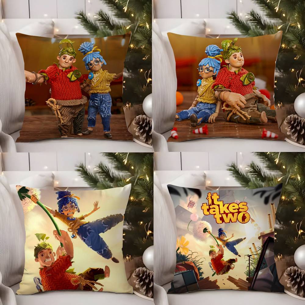 Kissenbezug Spiel It T-Takes Two Sofa Kurzer Plüsch Doppelseitiger HD-Druck Zimmer Home Office Geschenk Kissenhülle