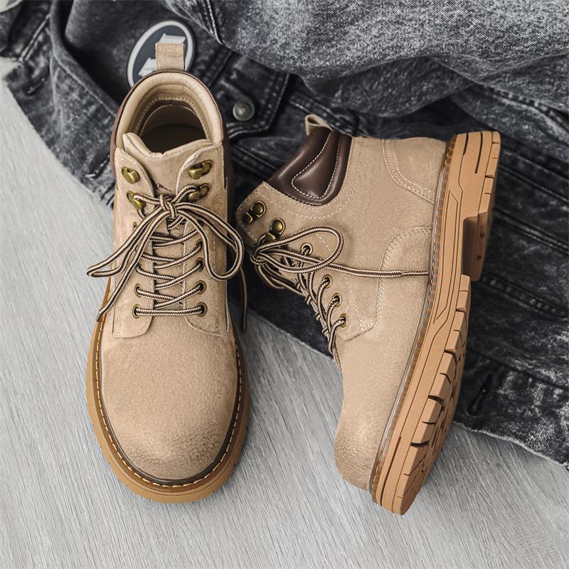 Martin boots leather autumn and winter new high-top rhubarb boots casual boots medium help raw boots tide