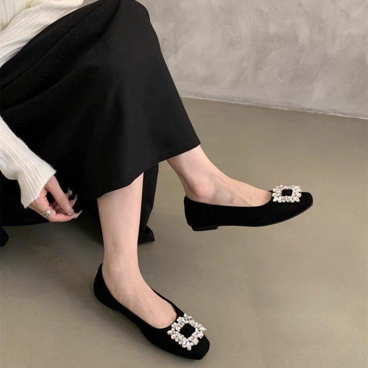 Strass leicht Mund weicher Boden flache Sohle EinzelSchuhe Frühling Französisch hoher Sinn Silber quadratischer Kopf Abendschuhe Damenschuhe