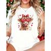Unisex Cute Cow Heart Glasses Bow Print T-Shirt Loose Casual Holiday Gift Valentine's Day Fashion Top