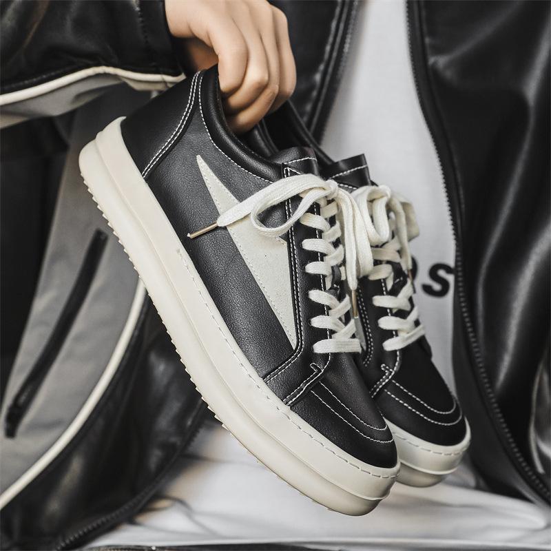 Neuer Nischen-High-Street-Flachschuh im RO-Stil, neues Leder, dunkel Schwarz und Weiß, High-Street-Low-Top-Nischenschuhe X