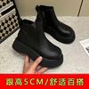 Soft leather thick-soled short boots, new big-headed muffin bottom in autumn and winter, retro small boots with velvet.