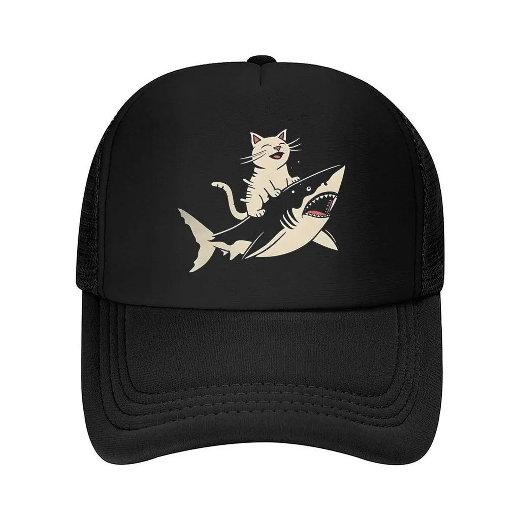 Cat Shark Whimsical Fun Art Design Mesh Baseball Cap