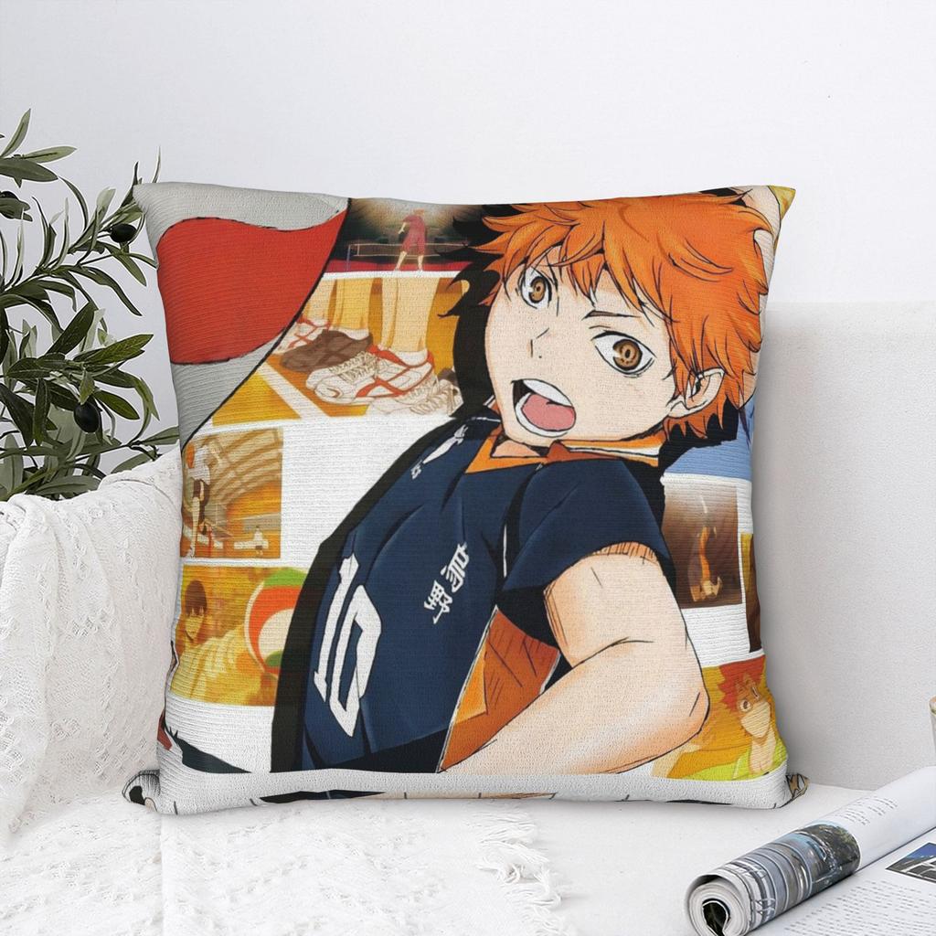 Haikyuu Shoyo Hinata Quadratische Kissenbezüge Japanische Anime Kissenbezüge Modisch mit Reißverschluss Dekorative Kissenbezüge für Auto 40x40cm