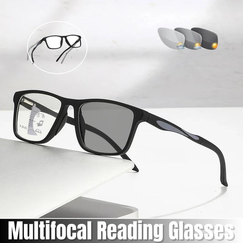 Dual Use Spring Leg Photosensitive Color Changing Multifocal Reading Glasses Anti Blue Light Lightweight