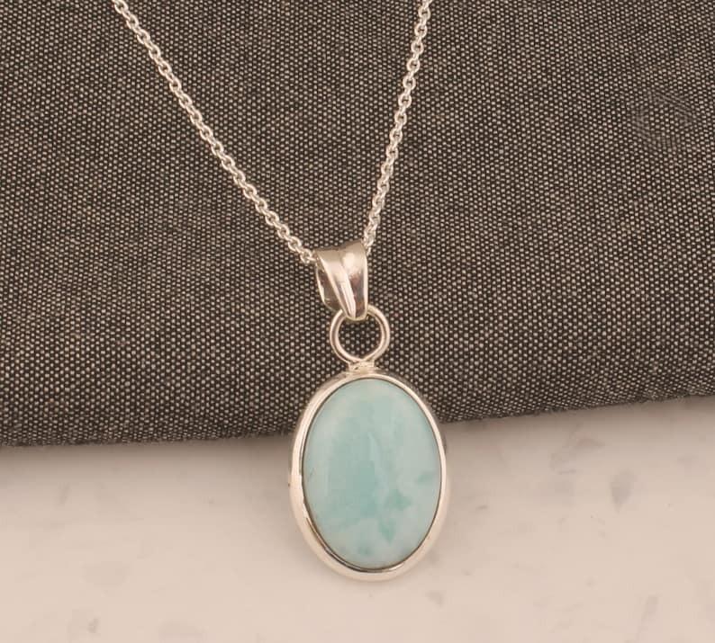 Massive 925er Sterlingsilber Larimar Edelstein Anhänger Halskette Boho Design Halskette Statement Schmuck