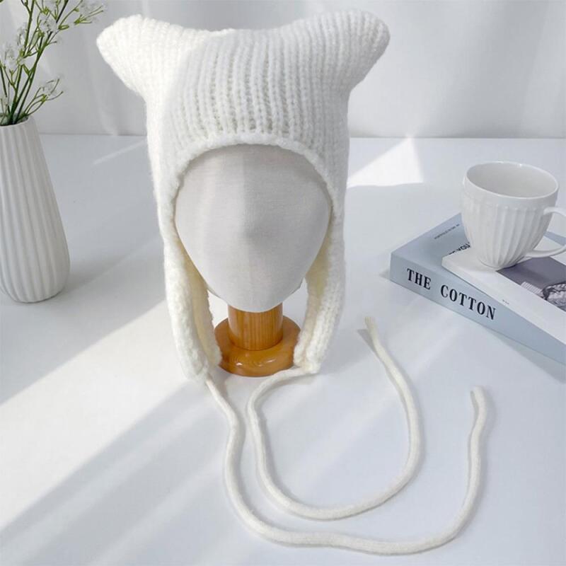 Damen Wollstrickmütze mit Hörnern und Ohrklappen