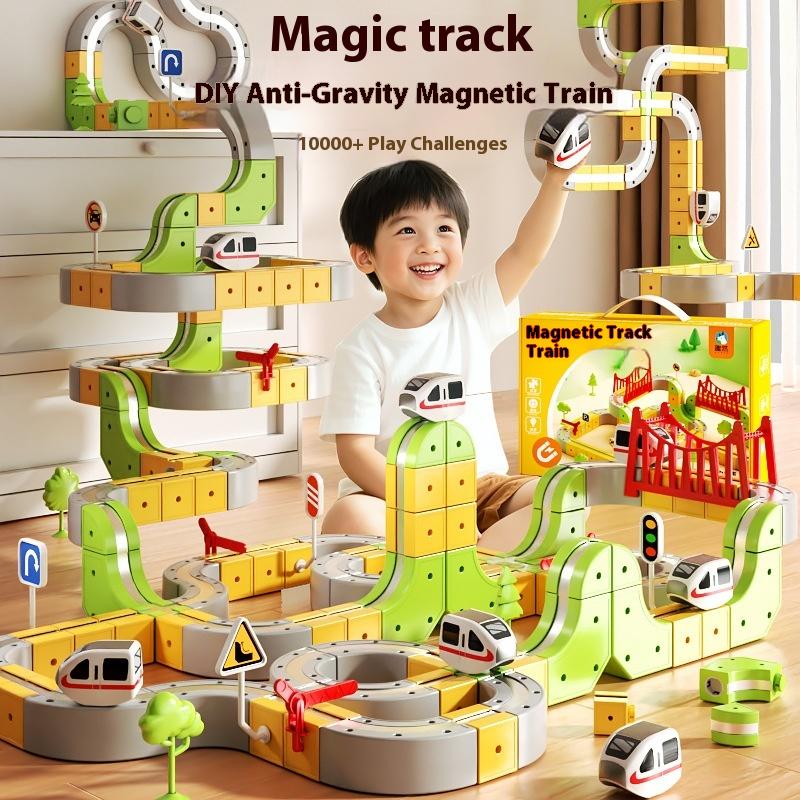 Magnetisches Bauzug-Set mit Elektrolokomotive, STEM Montessori Lernspielzeug für Kinder, DIY Eisenbahnschiene Weihnachtsgeschenk
