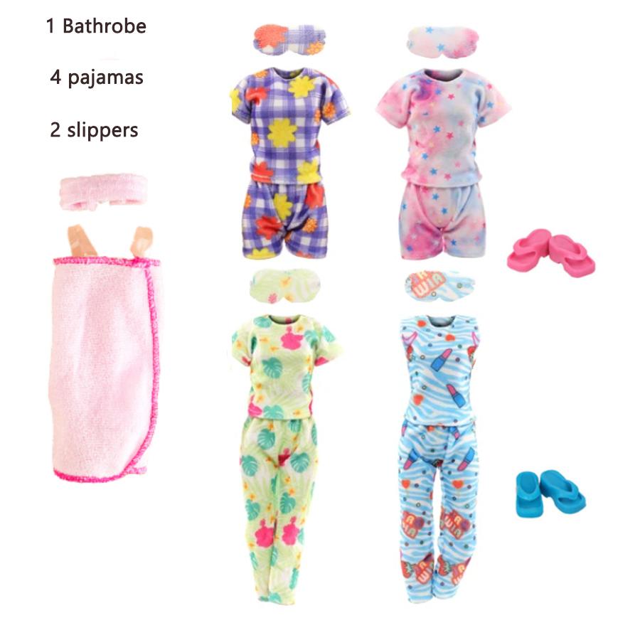 7 Stück 30 cm Puppenkleidung und Schuhe = 4 Pyjamas 1 Bademantel 2 Hausschuhe Handgemachtes Spielzeug Geburtstags-Weihnachtsgeschenk, Rollenspiel-Spielzeug