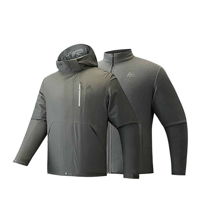 Anta Outdoor Series Three-In-One Hooded Zipper Detachable Fleece Liner Waterproof Windproof Breathable Durable Warm Jacket Men Jacket 952446602-8