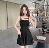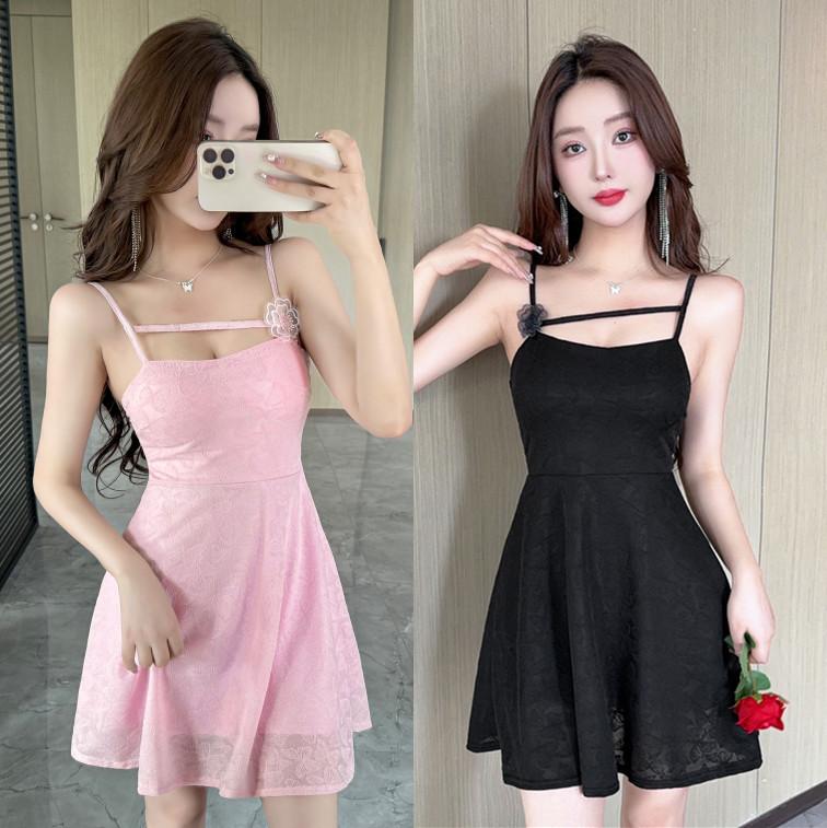 Summer new sexy pure desire hollow irregular suspender small black dress short thin a word dress women