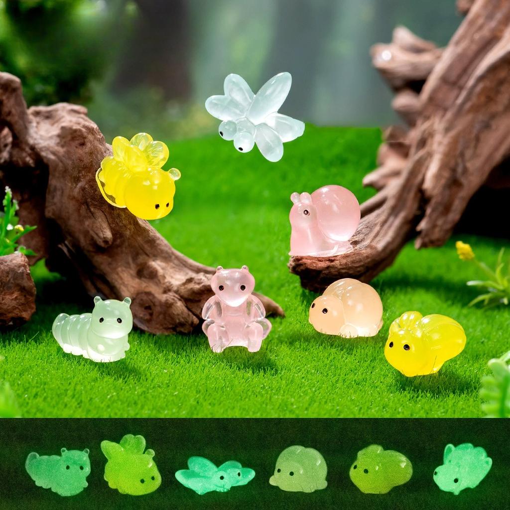 20/50pcs Luminous Resin Mini Caterpillar Snail Insect Doll House Glow-in-the-Dark Insect Figurines for DIY Aquarium Garden Decor
