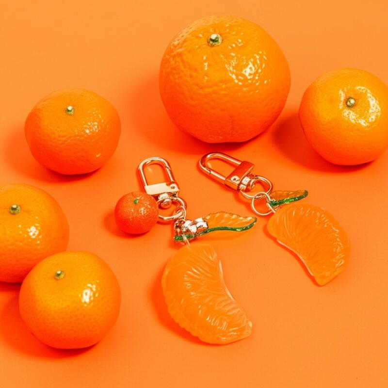 Tangerine Keychain Fruit Bag Backpack Keyring Friendship Couple Friend