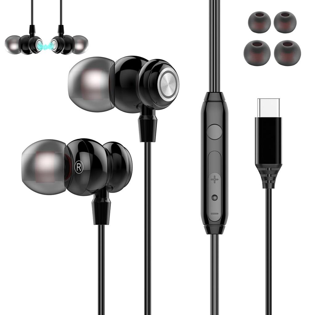 USB Type-C Wired Earphones, Type-C [2025 New Edition], In-Ear Earphones with Mic, HIFI Sound Quality, Volume Control, Noise Reduction, Stereo Earbuds, Headphones, Compatible with iPhone 17, iPhone 16, 15, iPad, AQUOS, Xperia, Galaxy, Arrows, OPPO, and Google