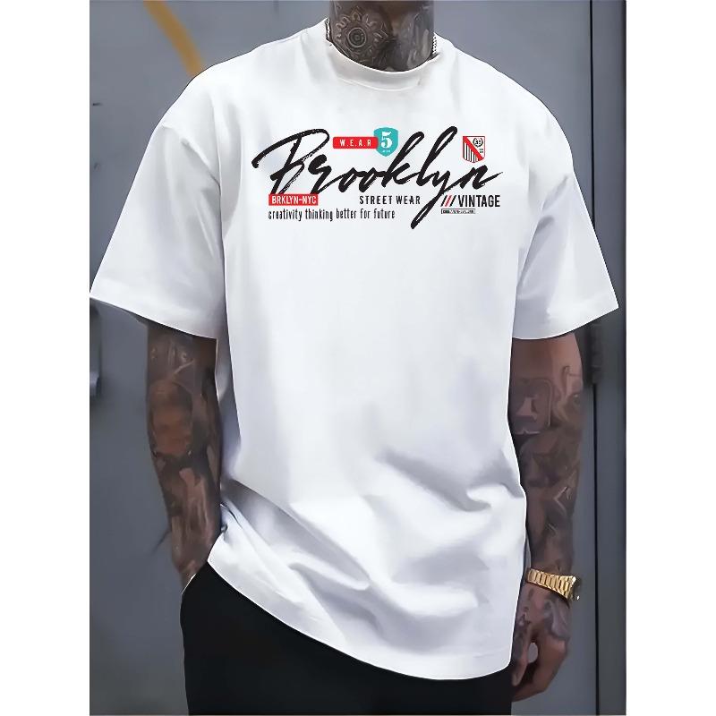 Europäische Größe Herren Reines Baumwoll-Weißes T-Shirt: Urbane Vibes: Brooklyn NYC Grafik-T-Shirt