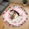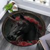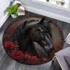 Schwarzes Pferd Runder Teppich, Teppich für Wohnzimmer Schlafzimmer Sofa Spielzimmer Dekor, Rutschfeste Fußmatte