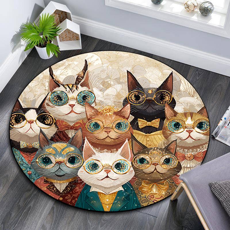 Cats Round Area Rug,Carpet Rug for Living Room Bedroom Sofa Playroom Decor,Non-slip Floor Mat