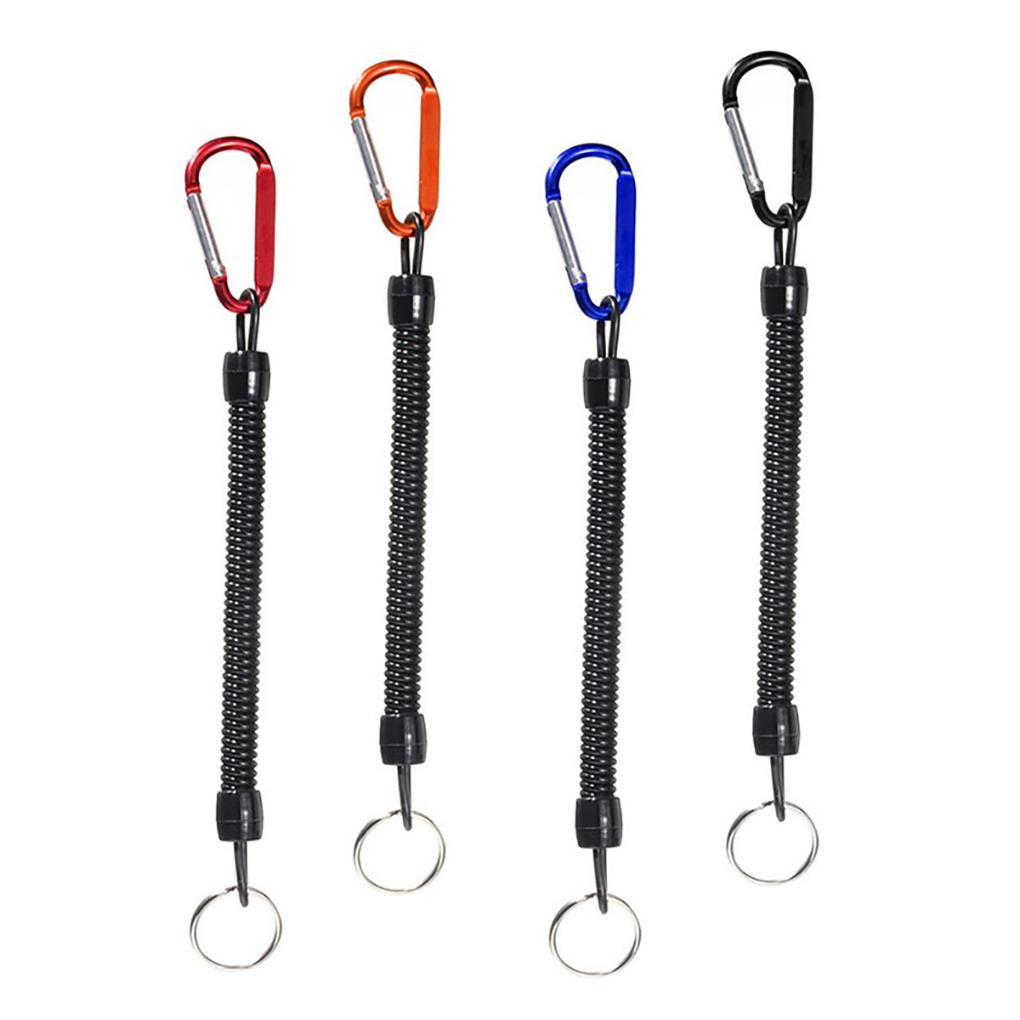 4 Pieces Fishing Lanyards Spring Ropes Anti-Lost Spiral Key Ring Climbing