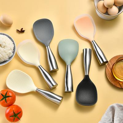 Stainless Steel Handle Silicone Rice Spoon Anti Scalding Serving Spoons Rice Paddle Cooking