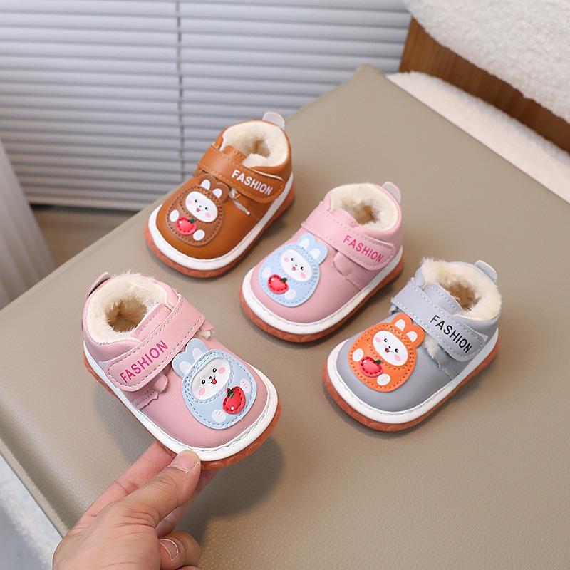 Infant Walking Shoes 0-1-2 Years Old, Boys and Girls Winter Squeaky Shoes, Fleece-Lined Thickened.