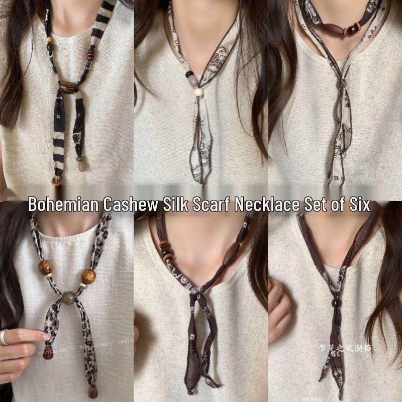 Bohemian Ethnic Cashew Scarf Necklace with Wood Beads Choker for Women