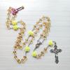 1 Stück rosa Rose Kristall Rosenkranz Halskette katholischen Vintage Kreuz Anhänger lange Halskette religiösen Schmuck