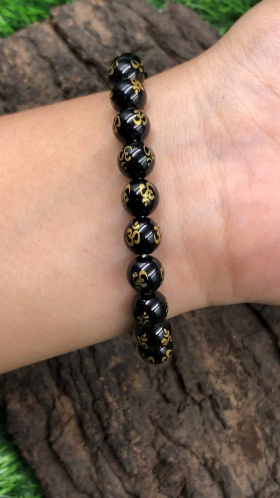 8mm Natürlicher Schwarzer Onyx OM Edelstein Perlen Armband 7.5" Runde OM Perlen Schmuck Geschenk Für Sie/Ihn RBB-20