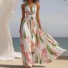 Frühling/Sommer Romantisches Resort-Stil V-Ausschnitt Rückenfreies A-Linien-Kleid - Damen Strandmode