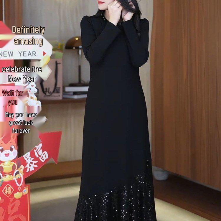 Elegantes hohes Damen-Pailletten-Netz-Midikleid - Tailliert & Schlankmachend