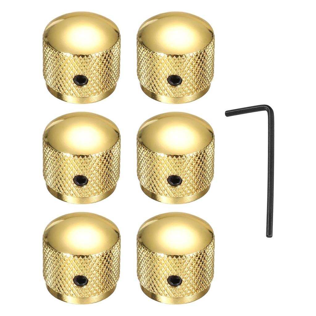 Durable: This volume and tone control knob is made of metal, lightweight yet durable for long-lasting use. High Compatibility: Standard 1/4" (6mm) mounting holes allow for easy installation on most guitars, basses, and other instruments. The included wrench makes installation easier.