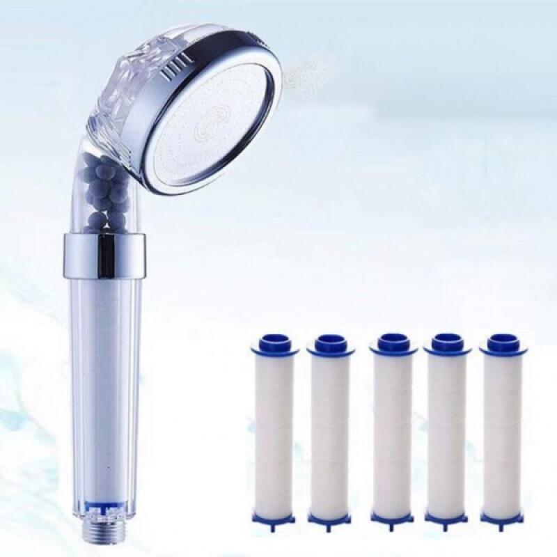 Set aus 5 drucksteigernden Duschköpfen und Filtern