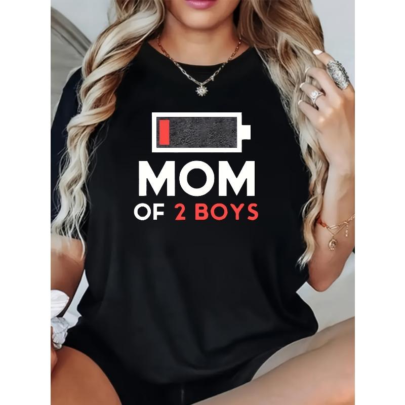 Mutter von 2 Batteriewarnung Print Locker geschnittenes Freizeit-T-Shirt Farbblock Kurzarm-Top