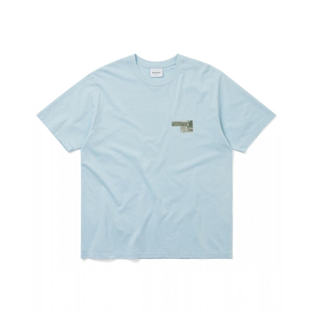 The THISISNEVERTHAT TSNVT Collage Tee Soft Blue is a regular fit short sleeve t-shirt characterized by the printed artwork on the front and back. Made from 210GSM cotton jersey, it is durable and suitable for repeated wear and washing. Variants in soft blue color are available, making it a convenient choice for casual wear.