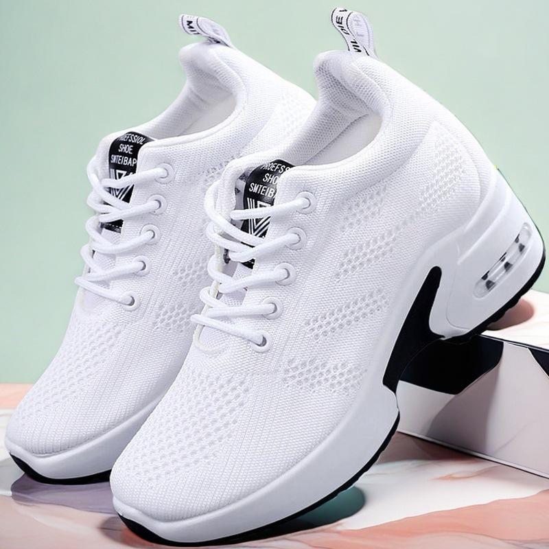 Heben Sie Ihren Stil mit diesen modischen weißen Sneakern für Damen hervor.. Mit einem atmungsaktiven Fly-Knit-Mesh-Obermaterial bieten diese Schuhe sowohl Komfort als auch einen modernen Look.. Die dicke PVC-Sohle sorgt für zusätzliche Höhe und gewährleistet gleichzeitig Strapazierfähigkeit und Halt.. Mit einem leichten Design und einer Textilinnensohle bieten diese Sneaker Komfort bei längerem Tragen.. Die Schnürung sorgt für einen sicheren Halt und macht sie zu einer vielseitigen Wahl für Freizeitaktivitäten.. Diese Sneaker sind perfekt für jeden, der Stil und Praktikabilität in seinen Alltagsschuhen kombinieren möchte.