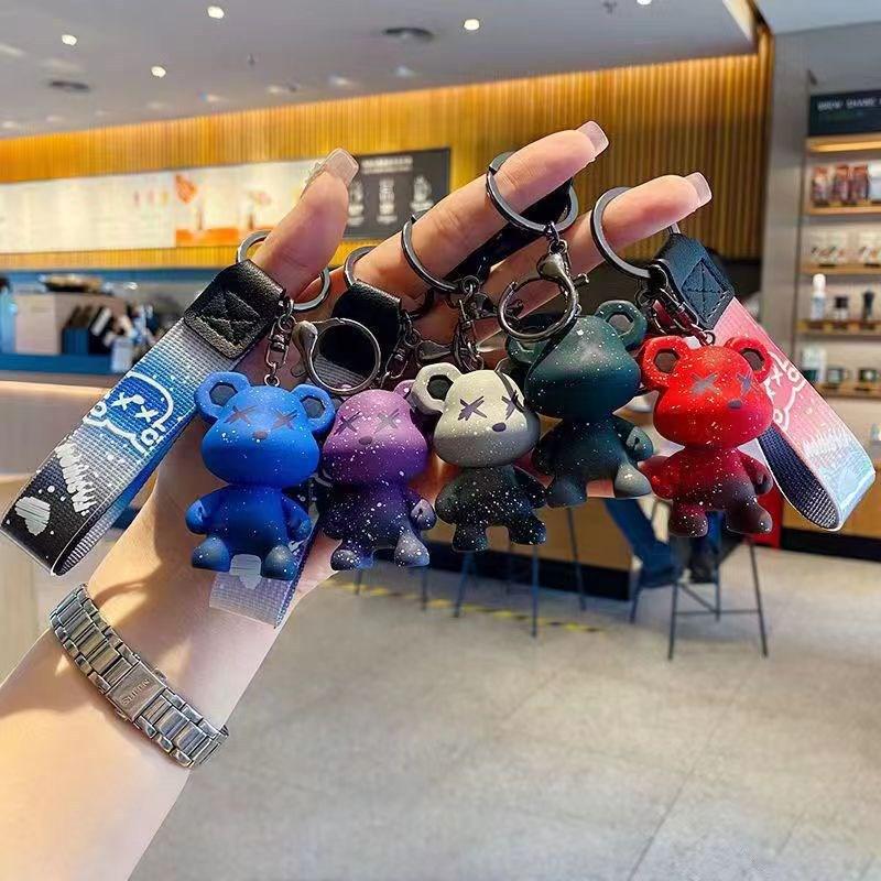Starry Sky Chameleon Bear Keychain - Cute Plush Toy & Schoolbag Pendant Gift