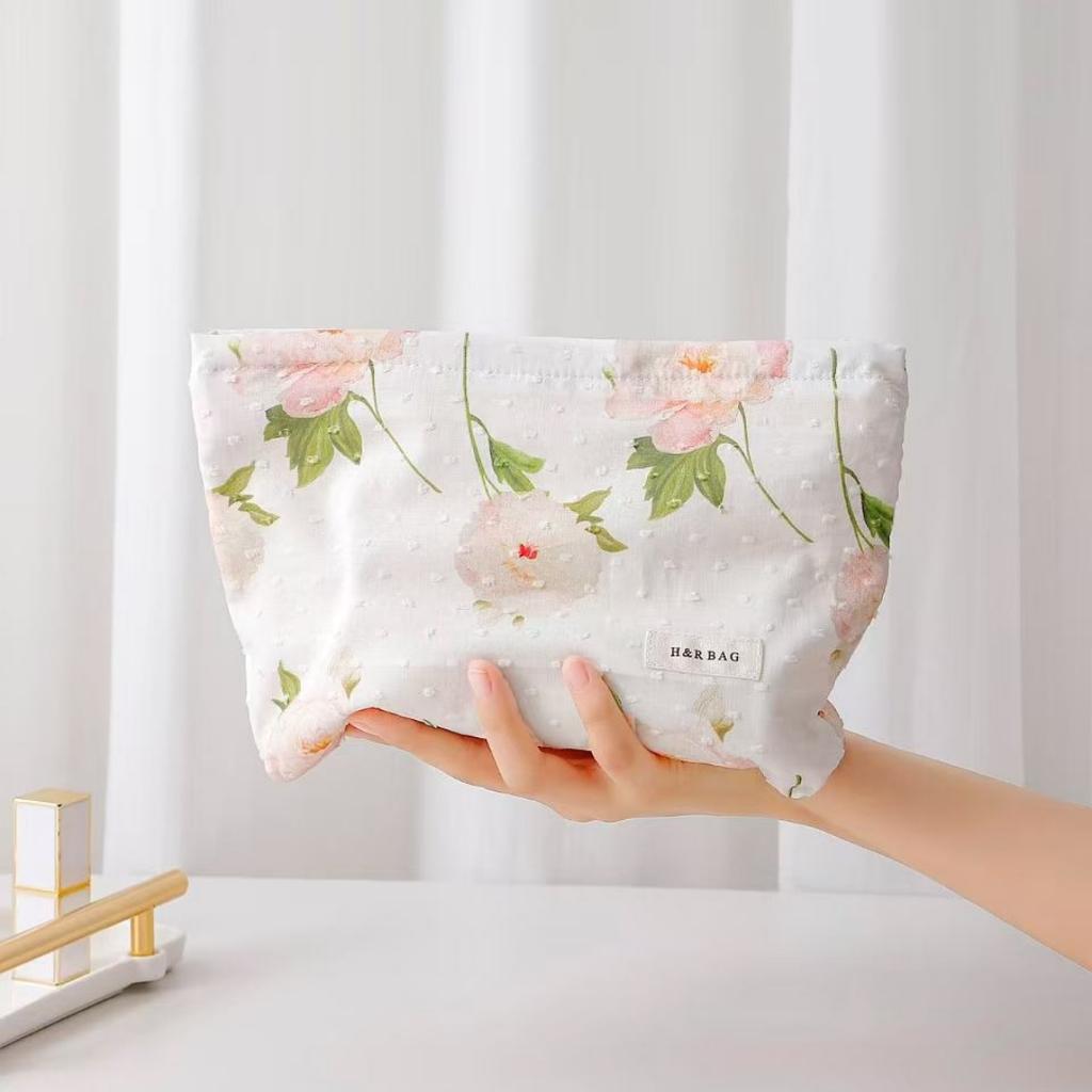 Tragbare Kosmetiktasche Stoff Baumwolle Floral Kosmetiktasche Stoff Clutch Raffinierte Kosmetik Aufbewahrungstasche Für Reisetasche Organizer
