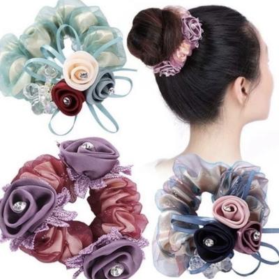 Neue Kopfbedeckungen Mädchen Kopfschmuck Damen Haargummis Doppellagige Haargummis Blumennetz Scrunchies