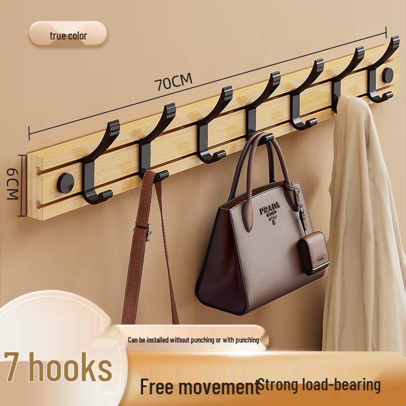 Bamboo Wall Mount Coat Rack with Adhesive Hooks