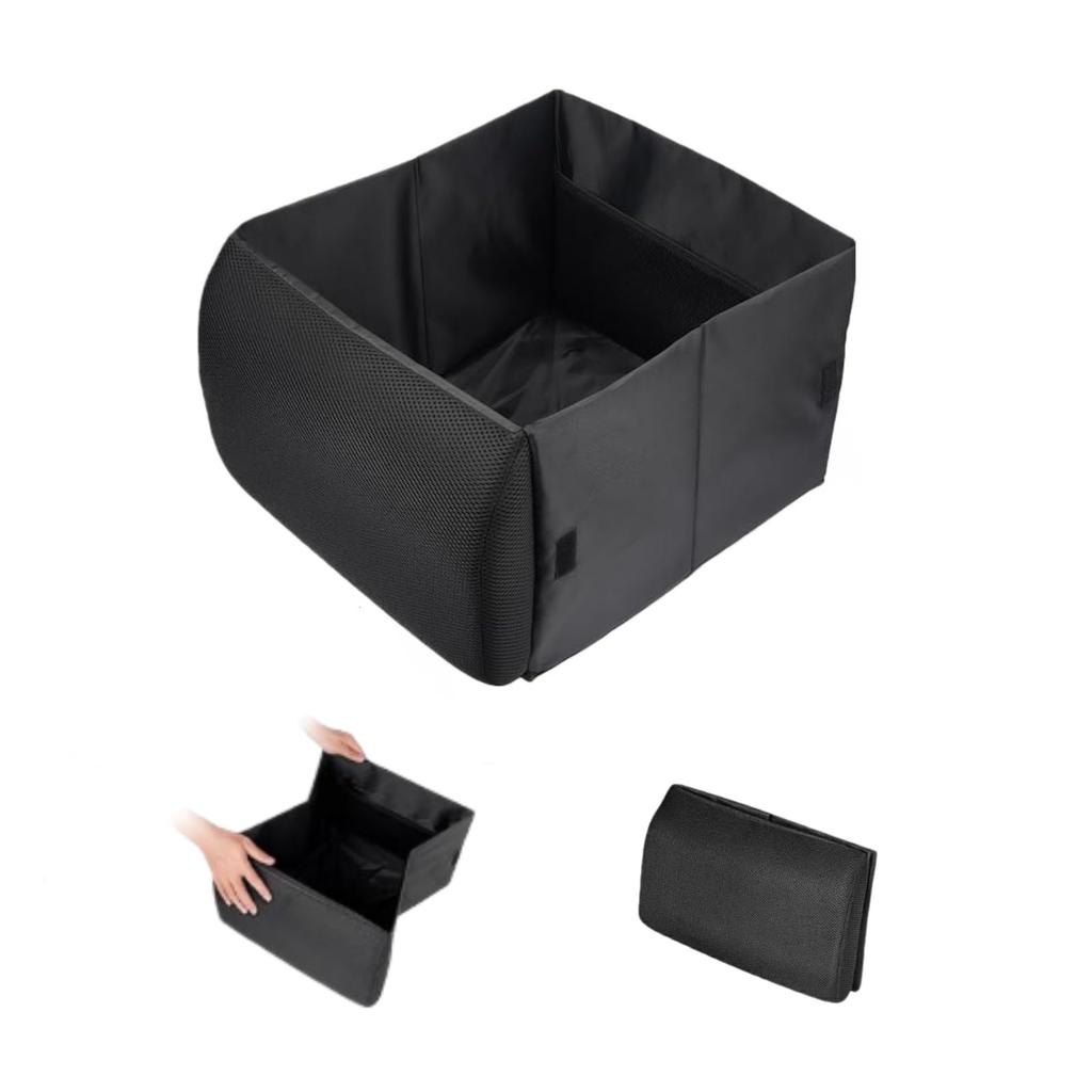 TATACLEA Passenger Seat Box with Lumbar Foldable Car Storage Box for Car Rear Seat 2-in-1 Cushion, Storage, Luggage, (Black)