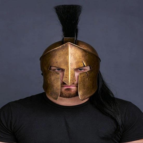 Dieses ikonische Helmdesign ist inspiriert vom legendären spartanischen König Leonidas I., der berühmt im Film 300 dargestellt wird, welcher die heldenhafte Schlacht bei den Thermopylen zeigt.. Der Helm fängt den kühnen und aggressiven Look antiker griechischer Krieger ein.