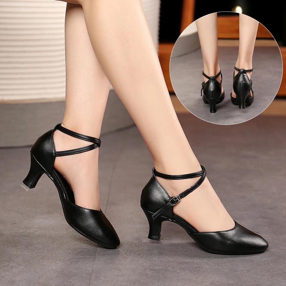 Leather Waltz Shoes Women's Modern Dance Shoes Dance Hall Tango Jazz Latin Shoes Girls Women's Dance Mid-heel