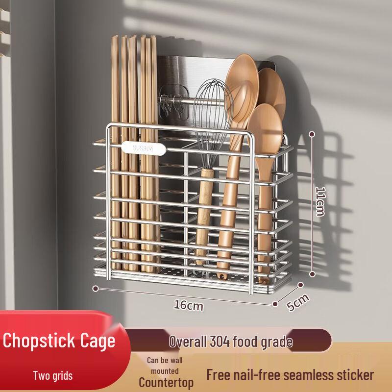Zhishi Stainless Steel Wall-Mounted Chopstick Holder (2-Pack)