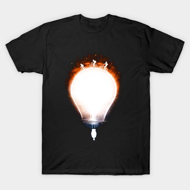 Herren Schwarzes T-Shirt mit Aufdruck Strange Light No-Cut Transferpapier Druck Baumwoll-T-Shirt