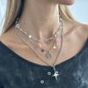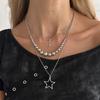 Hip-Hop Style Shiny Star Pendant Necklace, Fashionable Five-Pointed Star Rhinestone Chain Stacked Necklace.