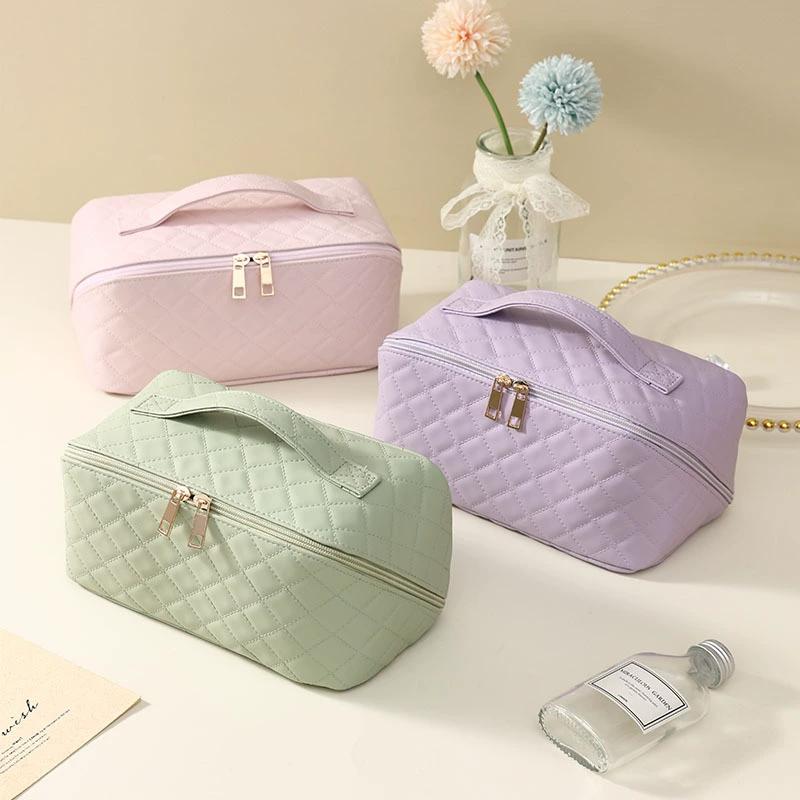 Neue einfarbige, einfache PU-Kosmetiktasche mit großer Kapazität, Kosmetiktasche, Make-up-Tasche, Reisetasche, tragbarer Hautpflege-Toilettenartikel-Organizer