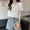 Sommer Bm Stil Kurz Schlankes Design Krawatte Holz Ohr Kante Revers V-Ausschnitt T-Shirt Oberteile Lässig Sommer Wesentlich Komfort und Stil Slim Fit Pullover T-Shirts