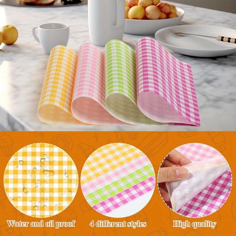 50PCS Checkered Wax Paper Greaseproof Sheets Non-Stick Food Wraps for Sandwiches Burgers Deli Party Fast Food Cheese Baskets