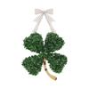 Crafted from a sturdy wooden frame covered in artificial shamrocks, this door hanger includes a ribbon bow and jutes wrapped stem, blending rustics charm with farmhouse elegance for reusable decoration.